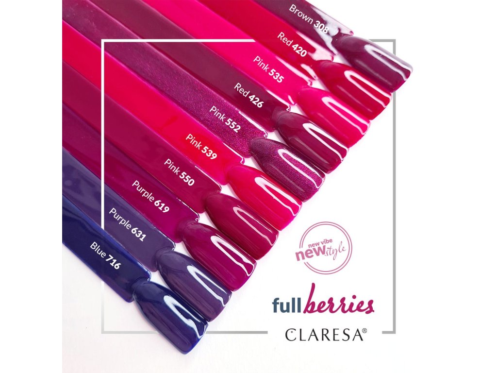 Fialová, tmavě modrá, amarantová a karmínová - to jsou barvy zralých, plných bobulí, které nás inspirovaly k vytvoření kolekce FULL JABLKA. Elegantní odstíny růžové, fialové a hnědé... Existuje něco lahodnějšího než sluncem prohřáté zralé jahody?... Vychutnejte si sluncem rozpuštěnou barvu a naplňte jí svou krabičku... NOVÁ VERZE HYBRIDNÍCH LAKŮ CLARES NA příjemné okamžiky... POUŽÍVEJTE Na předem vytvrzený hybridní základ Claresa... DOBA VYTVRZOVÁNÍ UV LED lampa 6 W - 2 x 45 sec. UV LED lampa 9 W - 2 x 45 sec. lampa UV LED 48 W - 30 sec. UV LED 60 W lampa - 15 sec. UV lampa 36 W - 120 sec. |