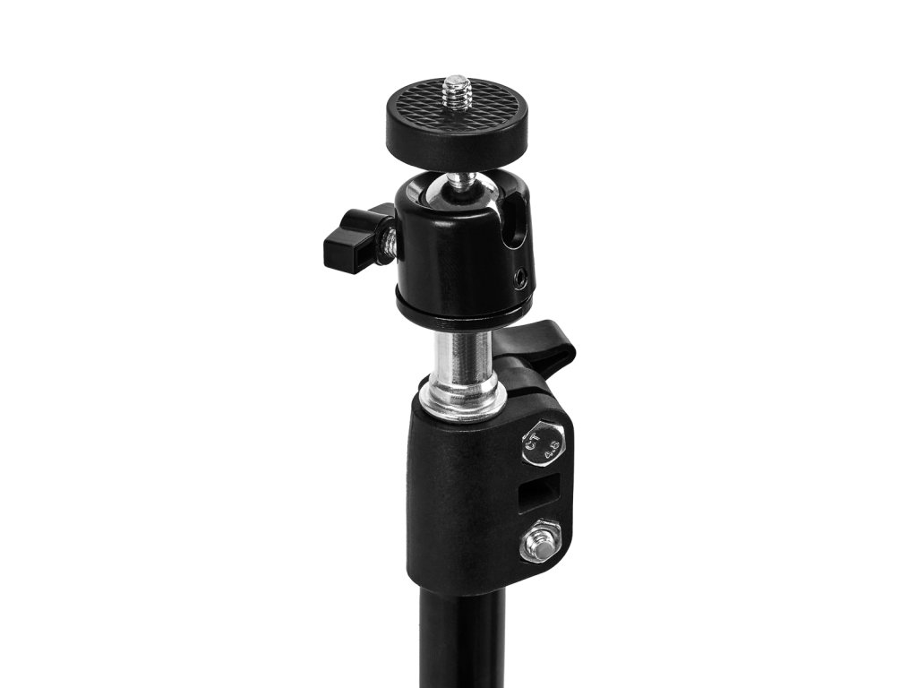 Lehká a odolná konstrukce stativus protiskluzovými nožičkami zajišťuje významný komfort a stabilitu během užívání. Teleskopický rám umožňuje zamykání výškyv rozsahu 40-160 cm, což usnadňuje nastavení osvětlení dle vašich potřeb. Malá hlavice kulička, součástí sady, umožňuje snadnou instalaci lampy a volné nastavení jejího úhlu.